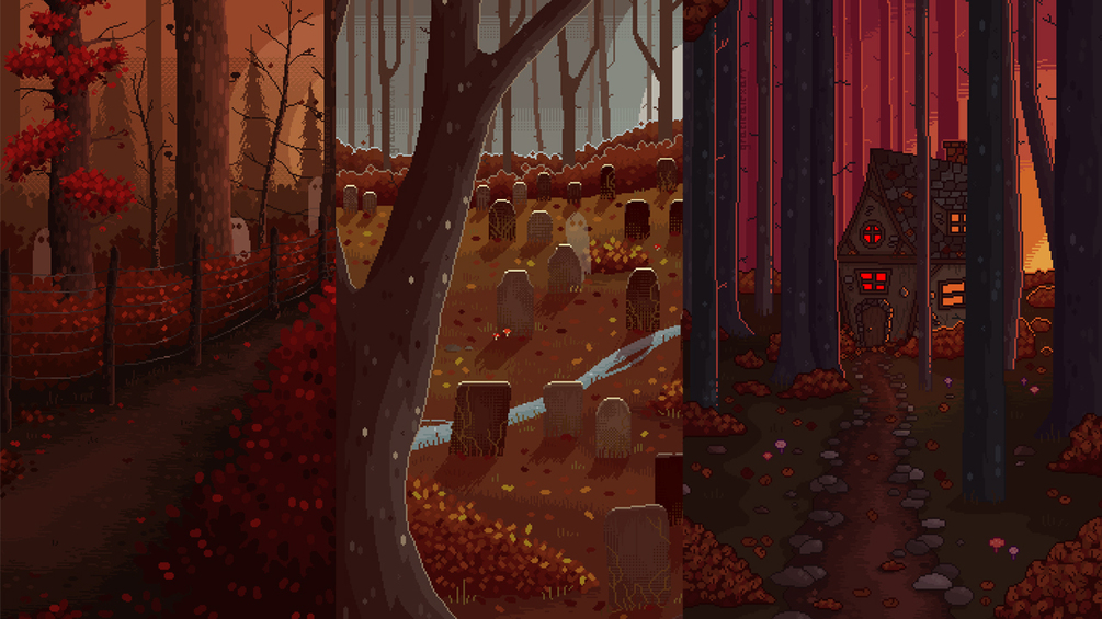 6 Spooky themed Pixel Art wallpapers. (Ghosts..Over the Garden Wall, Sleepy Hollow) I created them using Pixquare and Aseprite. I animate the illustrations on TikTok @graciealexart